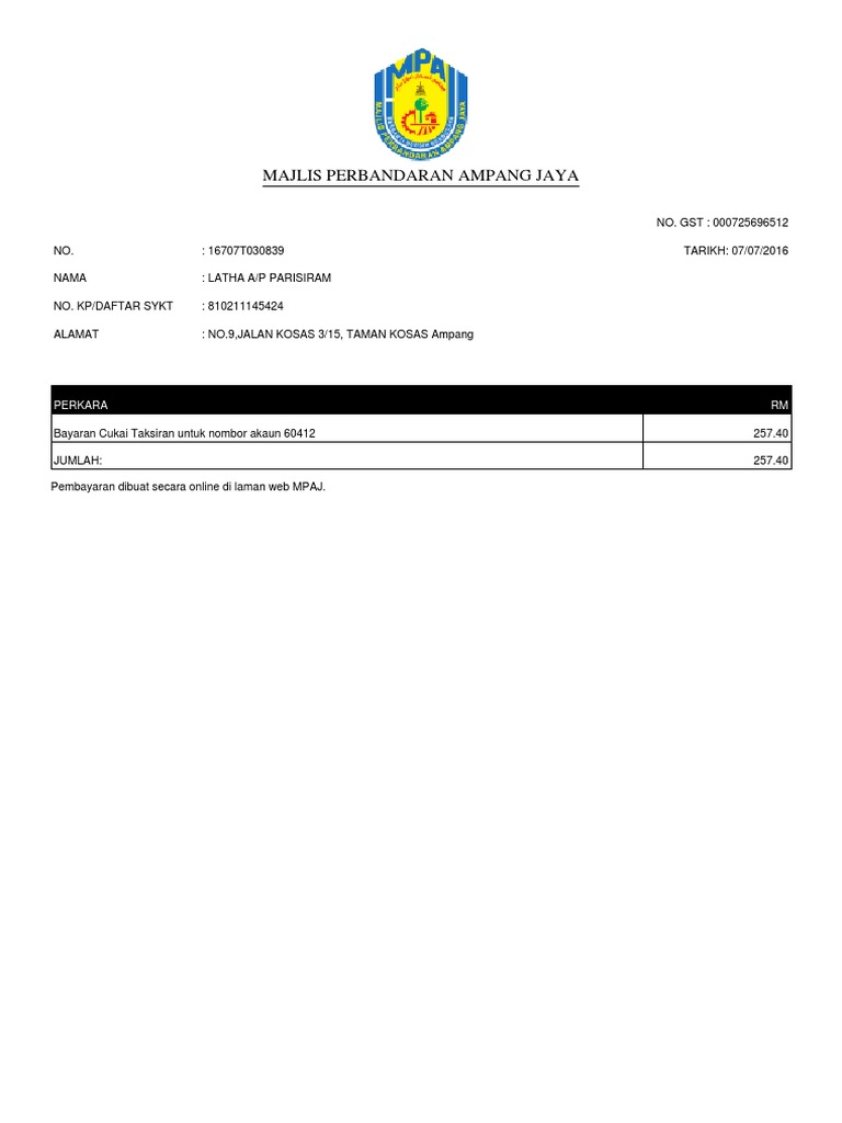 Cukai Taksiran Ampang Jaya / Ampang jaya, more commonly known as just ampang, is a town, a mukim and a parliamentary constituency straddling parts of the hulu langat district and gombak district, in eastern selangor, malaysia.. Cek, wang kiriman pos hendaklah dicatatkan nombor akaun, nama dan nombor telefon di belakang dan dipalang (akaun penerima. If we own a house or shop house in malaysia, we have to pay it's mean we success pay the cukai taksiran bill online. Majlis perbandaran ampang jaya, menara mpaj jalan pandan utama, pandan indah, selangor 55100 kuala lumpur. Secara online melalui laman web bank dan agensi berikut: .(mpk), majlis perbandaran ampang jaya (mpaj), majlis perbandaran subang jaya (mpsj) 3.